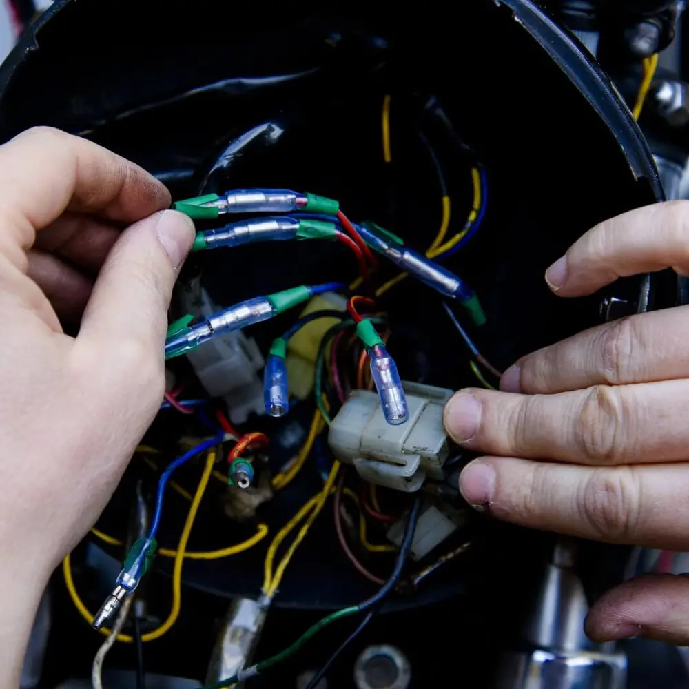 Wenn der Kabelbaum komplett erneuert wird, müssen meistens auch Stecker, Aderendhülsen, Kabelschuhe oder isolierte Quetschverbinder erneuert werden. Ob gecrimpt oder gelötet werden soll, ist bei der Erneuerung des Kabelbaums am Motorrad häufig eine Frage. Ein paar Hinweise zu dem Thema gibt es von uns gesondert im Blogbeitrag: Löten verboten?
